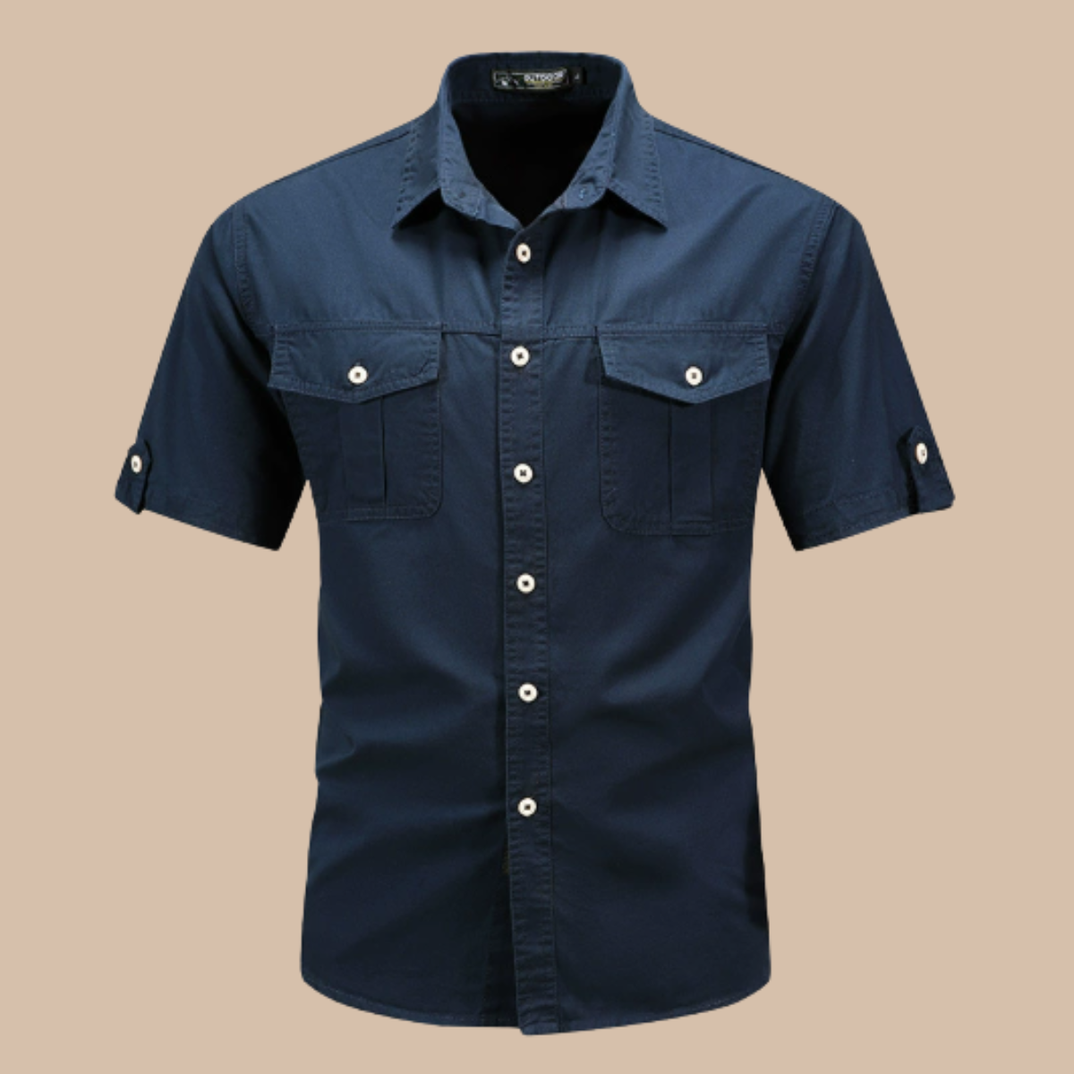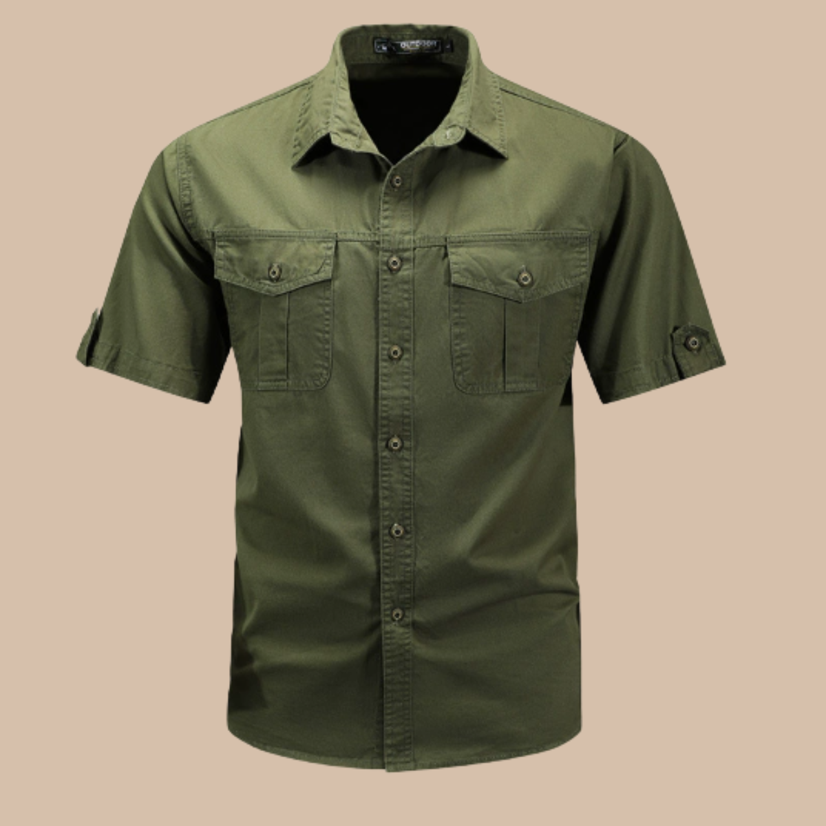 Design: Short sleeve cargo shirt with button front, flap chest pockets, and cuff tabs